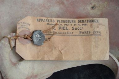 Plaque constructeur des Ets R. PIEL indiquant Scaphandre Autonome Yves Le Masson…